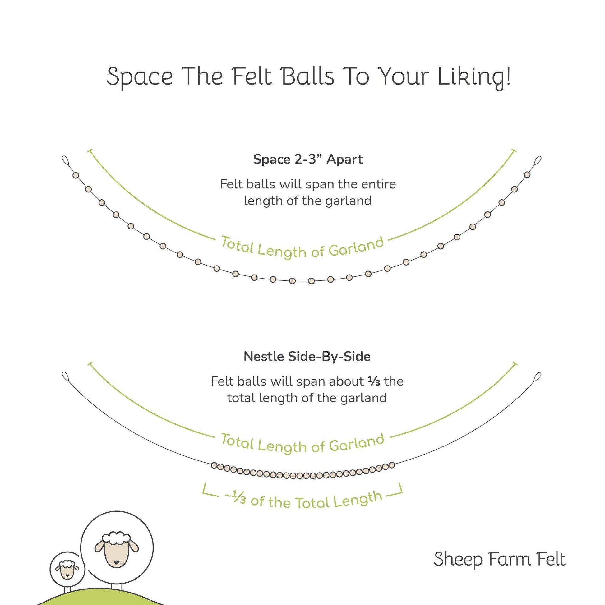 * Nestled side-by-side, felt hearts will span about 1/3 the total length of the garland