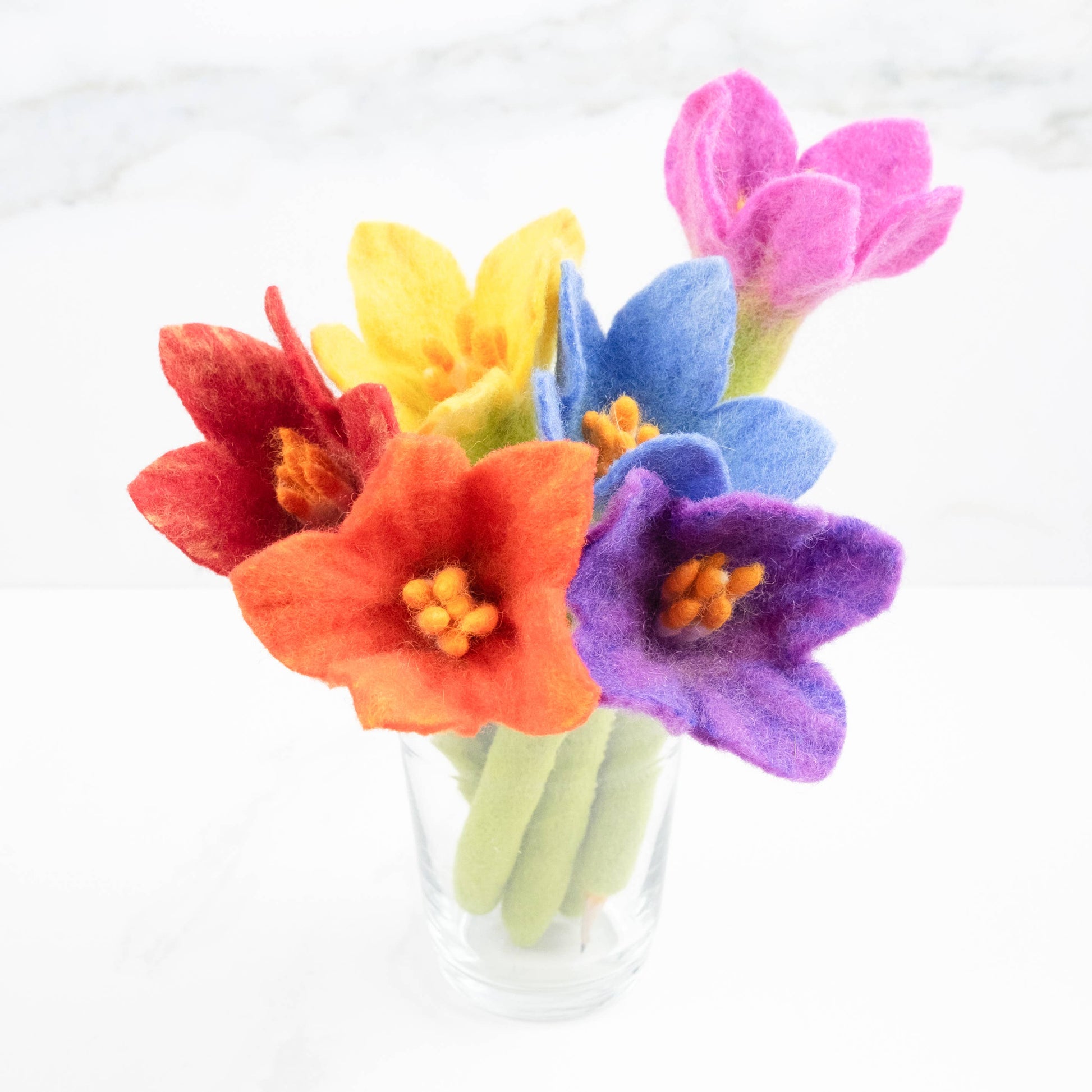 Blue currently available- choose color in the notes. Bright floral pencil toppers make a beautiful and functional bouquet. A cover to make griping easier and writing fun, simply slide a standard size pencil in the bottom. They can also be used as a finger puppet to use as a learning aide. Fair trade; made in Nepal. We take a portion of the profits from our felt business to pay school tuition for our workers' children. Make great goodie bag gifts, teacher gifts or fidget toy for students. Arrange a bunch of them with a ribbon for a thoughtful bouquet.